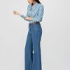 Làm từ vải denim, một loại vải cotton dệt chéo thô, bền bỉ.