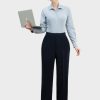 - Thiết kế: Thường có cạp cao, ống đứng hoặc côn, đường ly phẳng phía trước giúp tôn dáng và tạo cảm giác chân dài hơn.