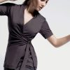 - Thiết kế chuyên nghiệp & Tinh tế:Thường là áo cổ chữ V, áo thun tay ngắn/lỡ, kết hợp với quần tây hoặc chân váy, tạo sự nữ tính, thanh lịch nhưng vẫn đảm bảo sự chuyên nghiệp, lịch sự.